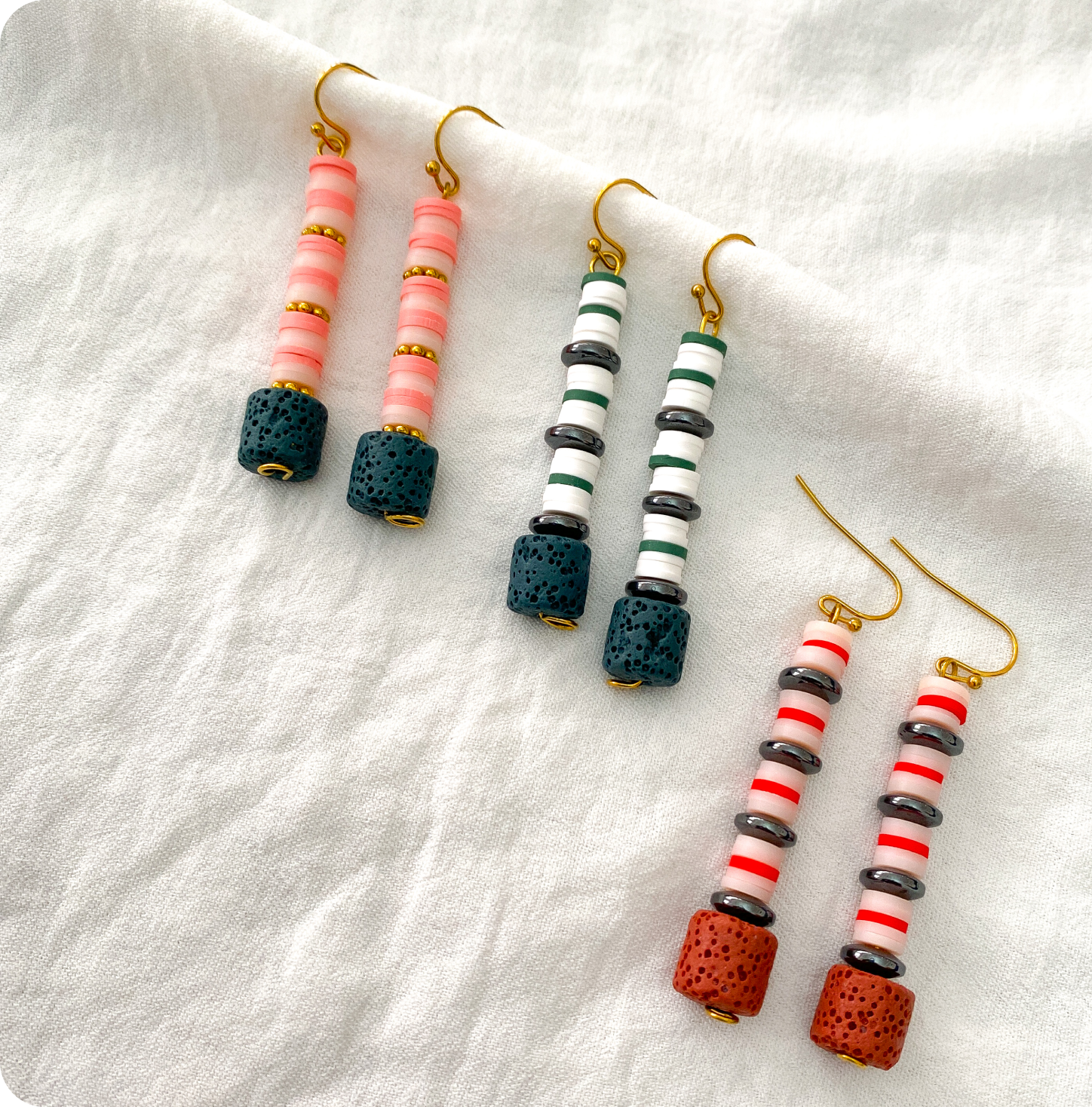 Our first piece in this new direction is the Ayoka drop earrings, inspired by the Yoruba word Ayoka, meaning "one who causes joy". The vibrant colours of these earrings are a reflection of the rich traditions of the Yoruba people, and they symbolize happiness and vibrance.